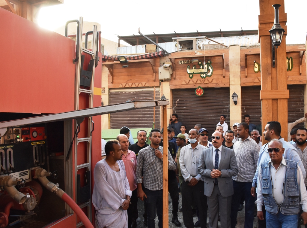 ورافق المحافظ خلال الجولة التفقدية اللواء أشرف عبد الله، مدير أمن أسوان والقيادات الأمنية والتنفيذية، والذي أعطى توجيهاته بمراجعة منظومة الحريق بالسوق السياحي، علاوة على فتح الشارع الجانبي المؤدي لشارع أبطال التحرير والمجاور لقسم شرطة أسوان أول، من أجل تسهيل الحركة المرورية لتدخل قوات الحماية المدنية لمواجهة أي حرائق داخل السوق السياحي.