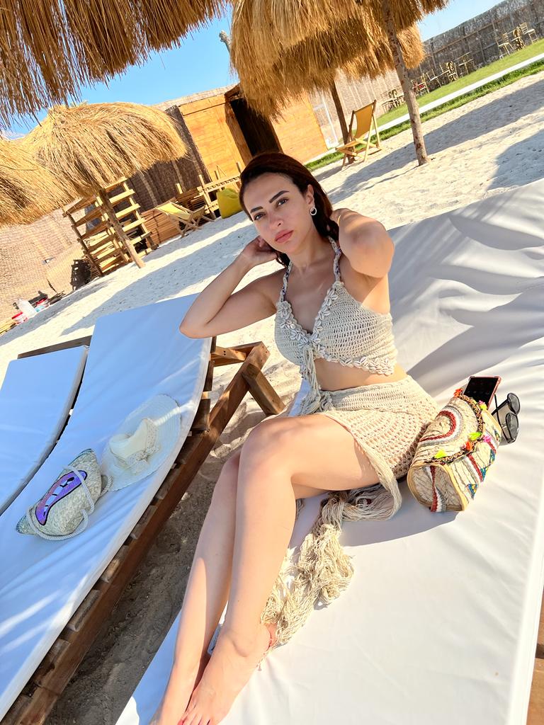 وظهرت كيرا الصباح في الصور التي نشرتها مرتدية كاش مايوه باللون البيج، وتركت شعرها منسدلًا على كتفيها.