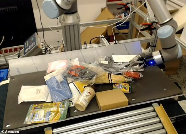يُظهر نظام روبوت جديد، كشفت عنه أمازون، يقبض على الأشياء ويمسكها بإحكام، حيث يستحوذ على مجموعة واسعة من العناصر ويقم بتخزينها بشكل مذهل، وتتحرك الآلة بمعدل 1000 عنصر في الساعة، وهو أسرع بكثير من العامل البشري، وفقًا لـ صحيفة ديلي ميل البريطانية.