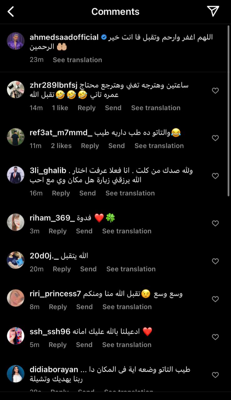 وظهر أحمد سعد في الصور وعلى يده رسم وشم للمرة الثانية، الأمر الذي عرضه للكثير من الانتقادات وجاءت كالتالي: والتاتو ده طب داريه طيب، التاتو وضعه إيه في المكان، حرام عليك.