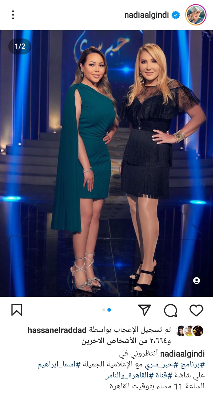 وروجت نادية الجندي، للحلقة عبر حسابها الشخصي بموقع انستجرام، وشاركت متابعيها صورة لها برفقة أسما إبراهيم، وعلقت عليها قائلة: انتظروني في برنامج حبر سري، مع الإعلامية الجميلة أسما إبراهيم، على شاشة القاهرة والناس، الساعة 11 مساءً يومي الخميس والجمعة، يارب الحلقة تعجبكم.