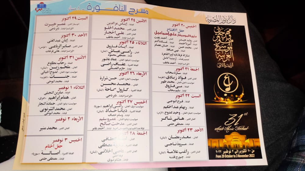 جدول حفلات مهرجان الموسيقى العربية