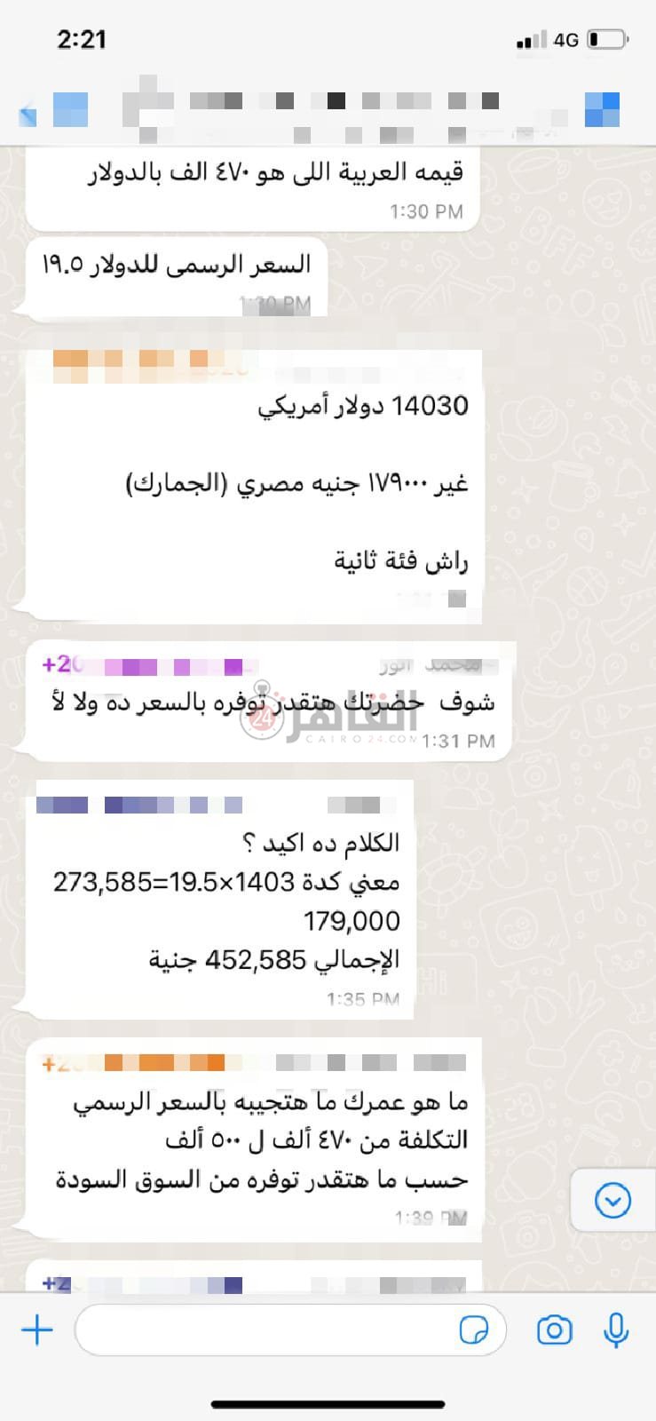 ومن ضمن رسائل مجموعة الواتساب الخاصة بعملاء تويوتا المتضررين، والتي اطلع القاهرة 24 على جزء منها كتب أحد الحاجزين: هنوفر دولار منين؟!.. ولو وفرناه ازي هيتحول على الحساب الرسمي للشركة؟
