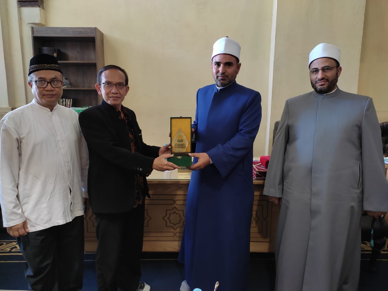 استقبل الدكتور هاني عودة، مدير عام الجامع الأزهر، والدكتور محمود الهواري، الأمين العام المساعد للدعوة والإعلام الديني بمجمع البحوث الإسلامية، اليوم، وفد الجامعة الحكومية الإسلامية بيوجياكارتا بإندونسيا، والذي ضم كلا من: الدكتورة عناية رحمانية، عميدة كلية أصول الدين بالجامعة الحكومية الإسلامية بيوجياكارتا، والدكتورة خير الوردتي، عميدة كلية العلوم التكنولوجيا، وعدد من المدرسين بالجامعة.