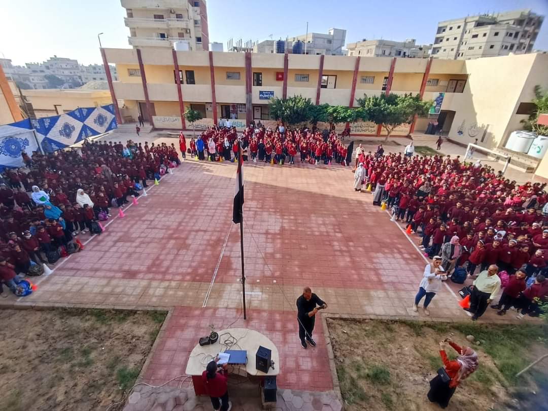 تابع حمزة رضوان، وكيل وزارة التربية والتعليم بشمال سيناء، وكيل وزارة التربية والتعليم، طابور الصباح والإذاعة المدرسية ومتابعة بدء العام الدراسي الجديد بمدرسة الشهيد شريف محمد حسين الابتدائية (آل ياسر سابقا).