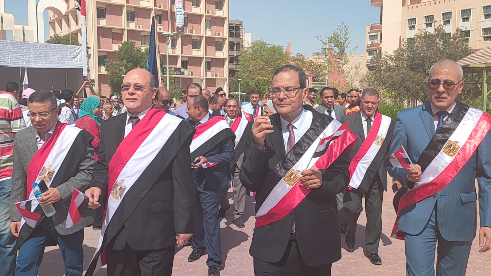 بـ تحية العلم.. جامعة سوهاج تستقبل الطلاب الجُدد في أول يوم دراسي | صور