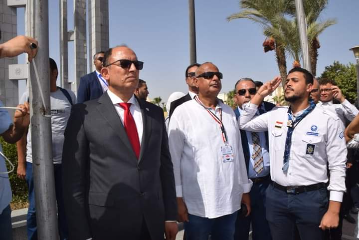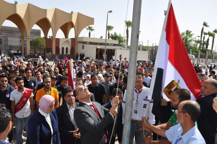 وفي نهاية حفل الاستقبال تم رفع علم جمهورية مصر العربية وأداء تحية العلم، وحرصت الأسر الطلابية التقاط الصور التذكارية مع الدكتور السيد قنديل رئيس جامعة حلوان.