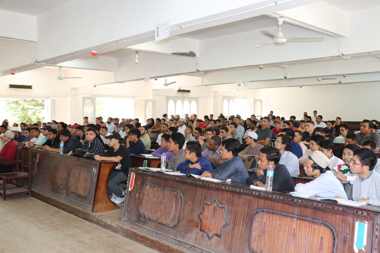 وقال رئيس الجامعة للطلاب: لكم الحق أن تفخروا بانتسابكم لمؤسسة الأزهر الشريف، برئاسة فضيلة الإمام الأكبر الدكتور أحمد الطيب، شيخ الأزهر الشريف، وعليكم أن تحملوا رسالته الوسطية المعتدلة إلى جميع أرجاء الدنيا، وعليكم أن تعملوا بما تتعلموا، وأن تتفقهوا فيما تقرأوا، ومن فضل الله علينا أن كلياتكم تزخر بالعلماء، وطالبهم أن يجددوا العزيمة والنية في أخذ العلم، وعدم التكاسل.