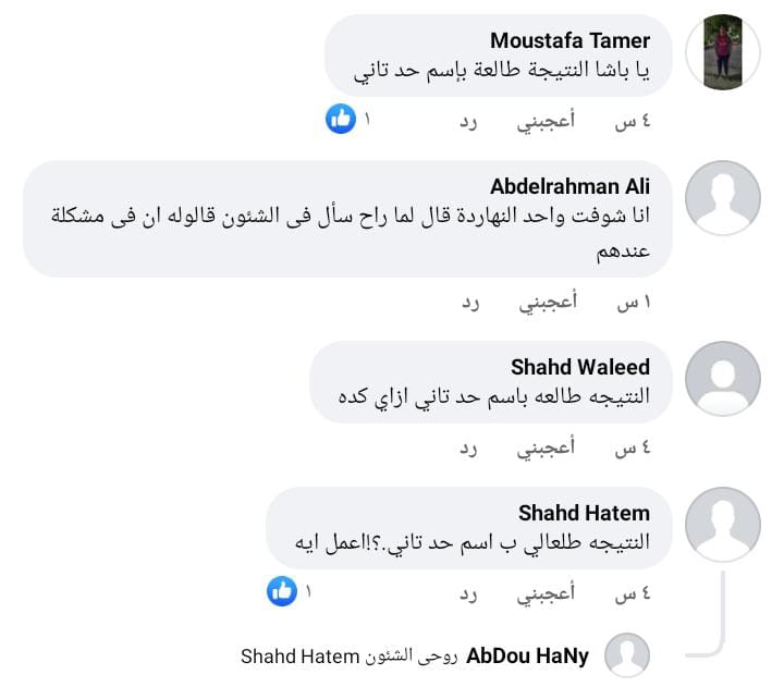 وكان عدد من طلاب الفرقة الأولى (المستجدين) بكلية الآداب جامعة حلوان قد اشتكوا عبر مواقع التواصل الاجتماعي خصوصًا على الجروبات الخاصة بهم من عدم تمكنهم من الحصول على نتيجة التشعيب الإلكتروني في أول يوم دراسة بسبب تغيير أسمائهم على الموقع الإلكتروني.
