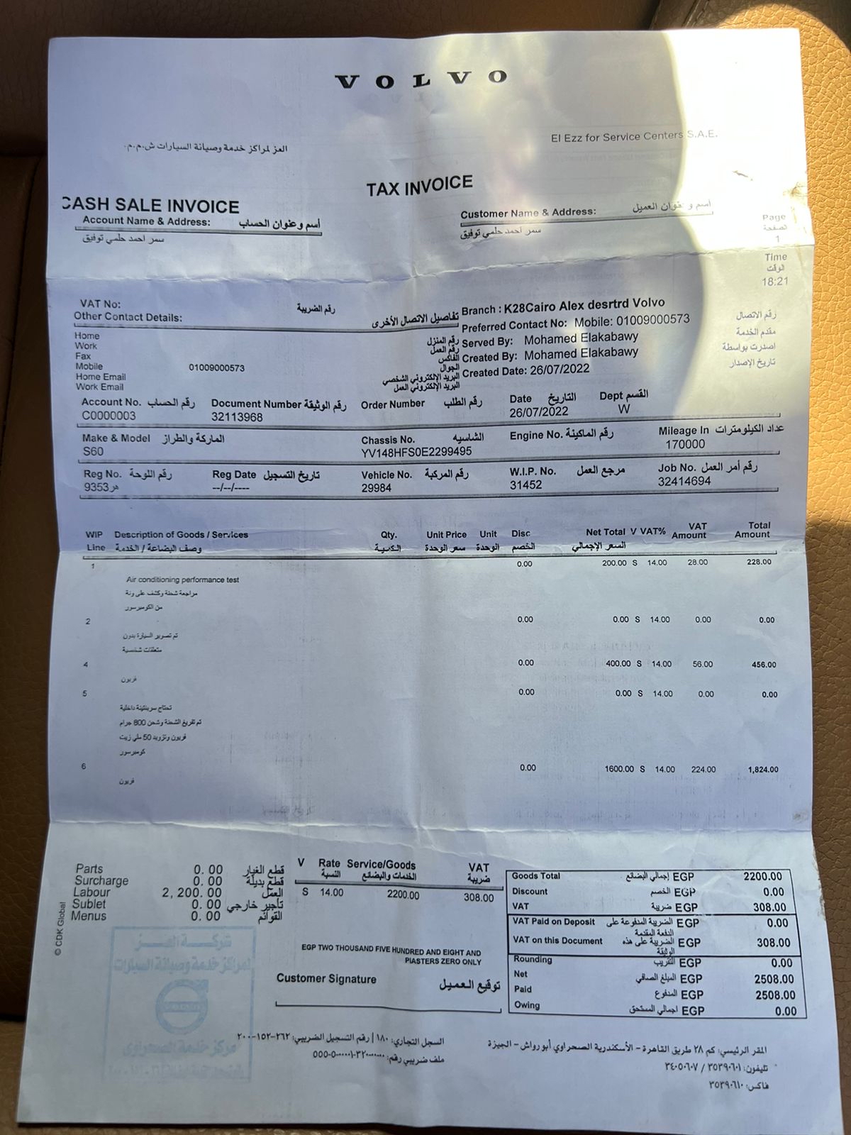 وأضاف مالك سيارة فولفو S60: «لم أتغيب مرة عن موعد صيانة السيارة، وحرصت على إجراء الصيانة لها لدى مراكز الخدمة المعتمدة التابعة للوكيل، من منطلق الحفاظ على السيارة والرجوع إلى الوكيل في أي مشكلة تحدث بها»، وعلميًا كان هذا القرار الصائب من وجهة نظره، لكن عمليًا لم يحصل شريف على الخدمة المنشودة من وكيل علامة في فولفو في السوق المحلي، ممثلًا في مجموعة عز العرب، مع حدوث أول مشكلة يتعرض لها.