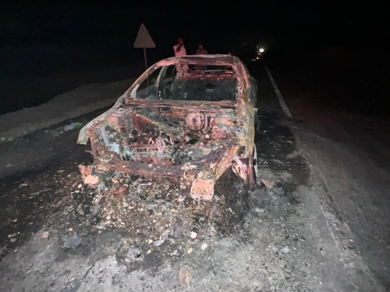 وبالفعل استطاع أن ينقذ نفسه وابتعد عن السيارة ببضعة أمتار ليشاهدها وهي تحترق شيئًا فشيئا، ثم تنفجر أمام عينيه وتتحول إلى رماد على الطريق.