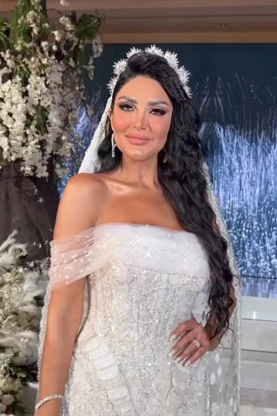 وظهرت سالي عبد السلام بفستان أبيض طويل مطرز وشعر منسدل وطرحة طويلة، ومكياج وإكسسوارات بسيطة أظهرت جمال ملامحها.
