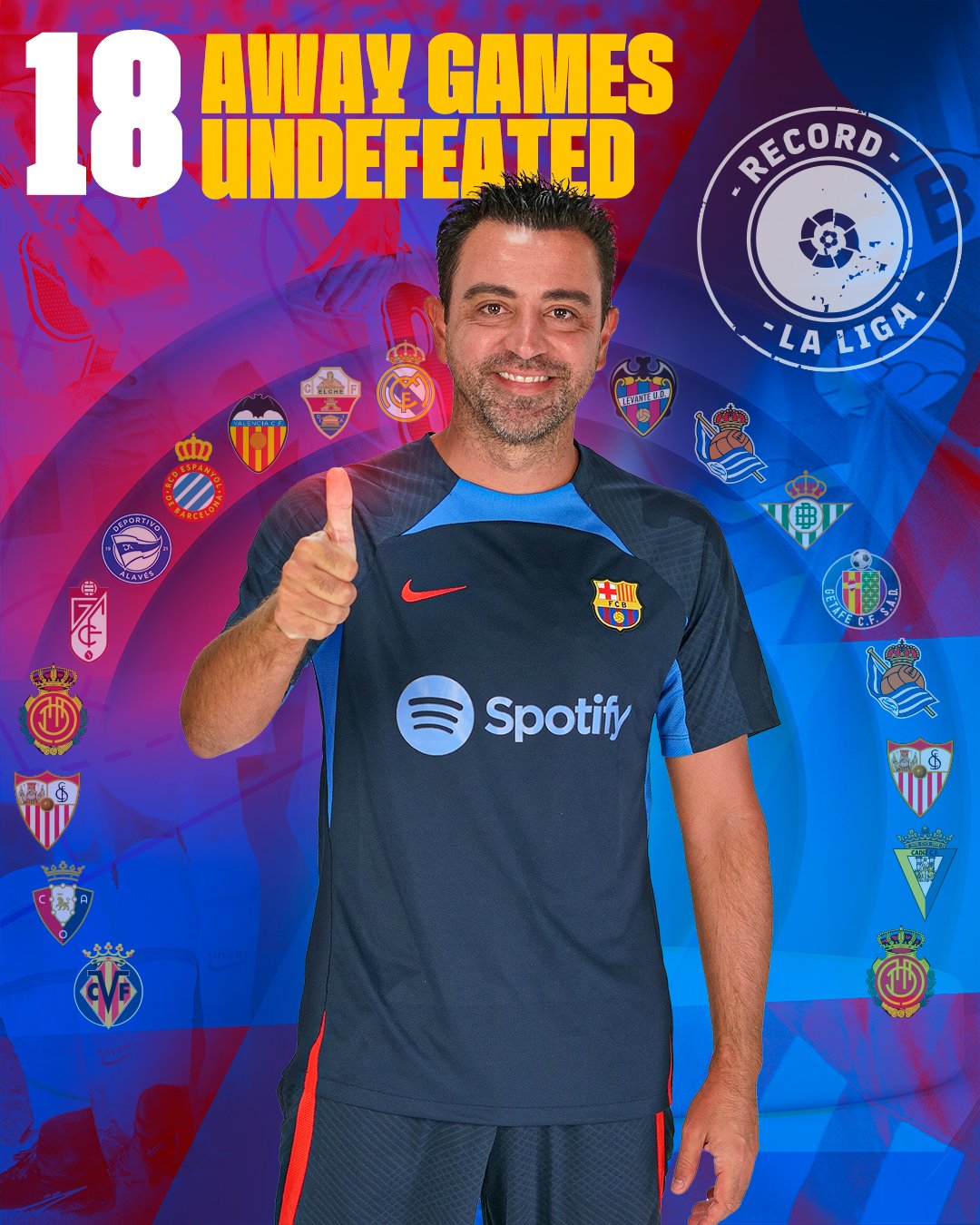 وكسر تشافي هيرنانديز رقم المدرب الفرنسي زين الدين زيدان وأصبح المدرب صاحب أكبر عدد فوز في المباريات المتتالية دون هزيمة خارج الأرض في مسابقة الدوري الإسباني، برصيد 18 مباراة متتالية.