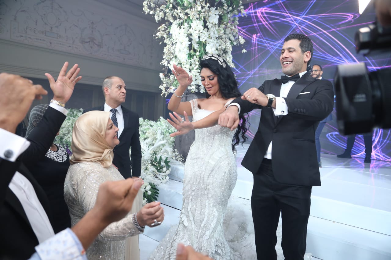 الكينج ونجوم الفن والإعلام يحتفلون بزفاف سالي عبد السلام ومؤمن الباز