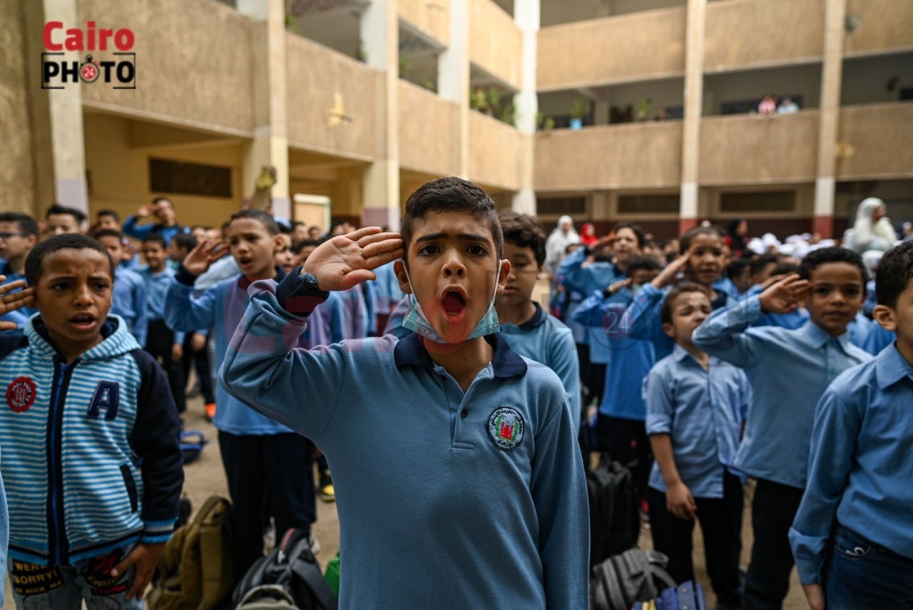 أبطال الغد.. التزام طلاب المدارس بتحية العلم وطابور الصباح في أول أيام الدراسة | صور