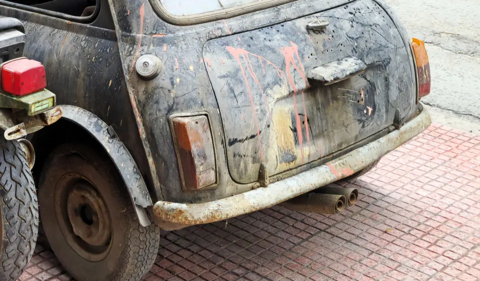 وتشير مصداتها والمصابيح الأمامية المفقودة إلى أنه تم دفعها وإساءة استخدامها خلال فترة وجودها في موقف السيارات أيضًا.