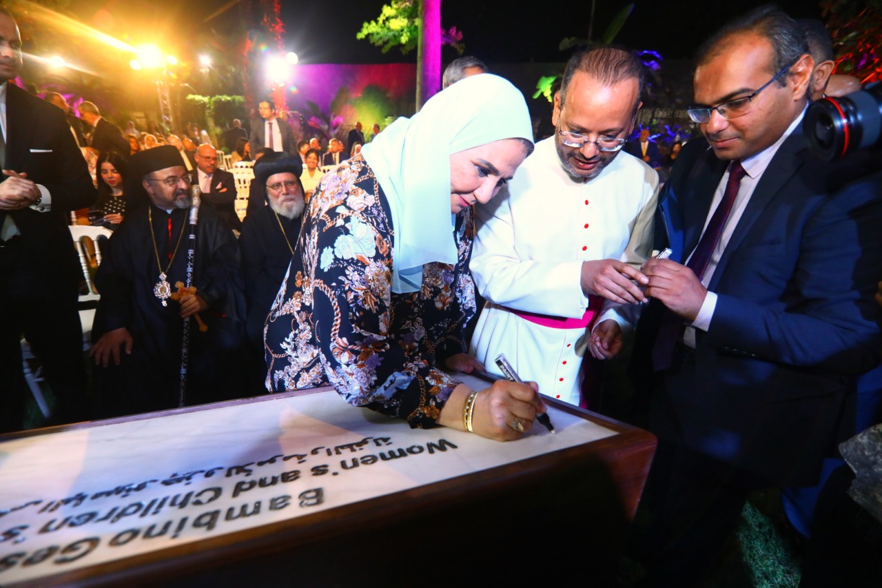 وأعلنت وزيرة التضامن؛ إشارة البدء في وضع حجر الأساس لمشروع مستشفى البامبينو جيزو للأمومة والطفولة، بالإضافة إلى إعلان مشروع دار واحة الرحمة للأيتام، والتي استوحت اسمها من الهدية القيمة التي قدمها قداسة البابا فرنسيس لهذا المشروع وهي نسخة طبق الأصل من تمثال الرحمة للفنان العالمي مايكل أنجلو.
