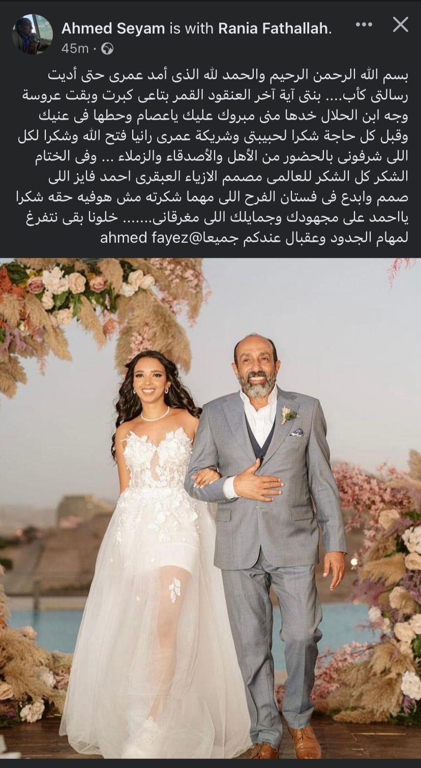 أول تعليق من أحمد صيام بعد حفل زفاف ابنته