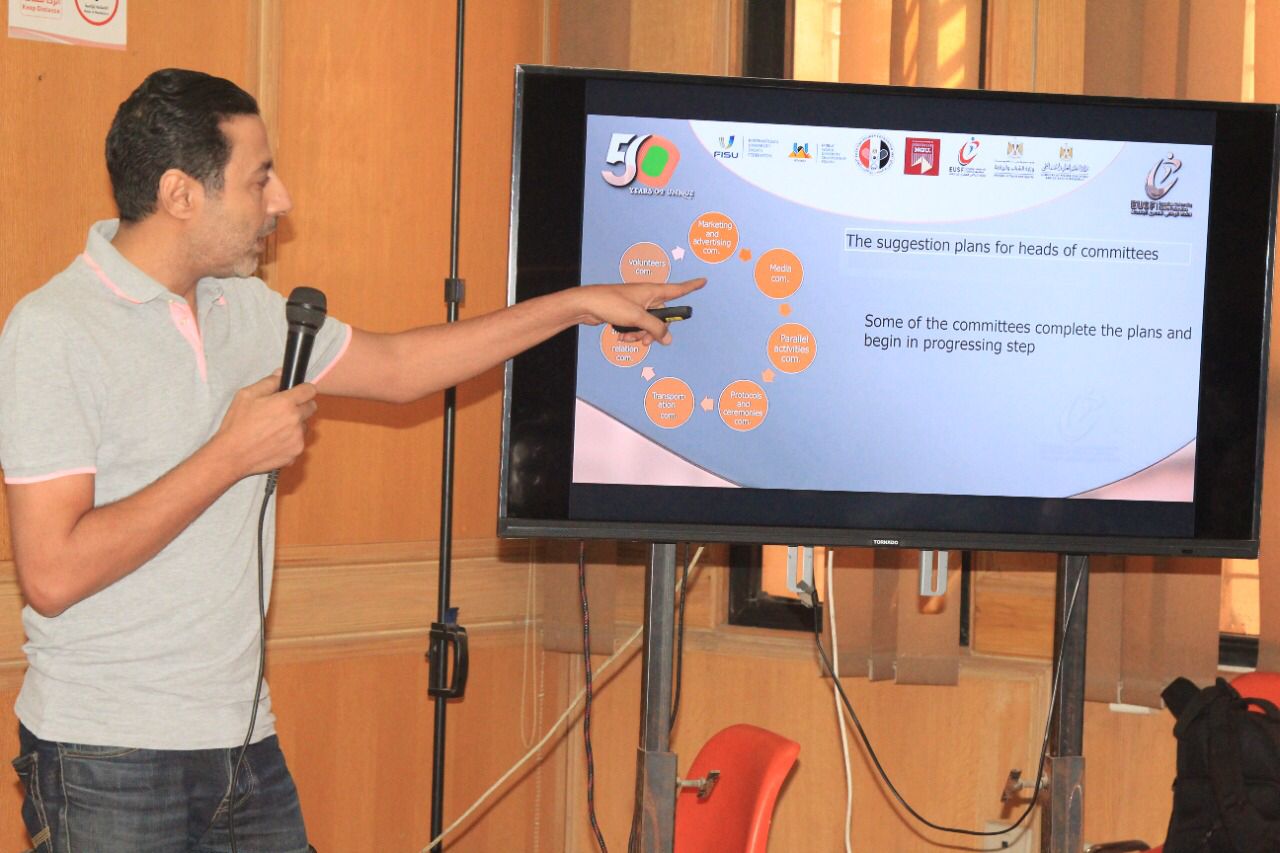 نقل الدكتور صبحي حسانين رئيس اللجنة المنظمة للبطولة، تحيات كلا من الدكتور أشرف صبحي وزير الشباب والرياضة، والدكتور أيمن عاشور وزير التعليم العالي إلى جميع الحضور وحثهم على بذل أقصى جهد لإنجاح البطولة خاصه أنها تقام تحت رعاية رئيس مجلس الوزراء.