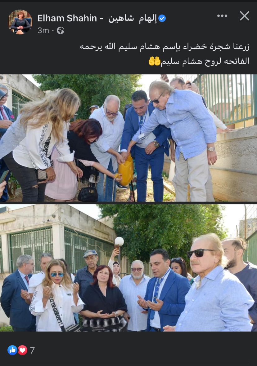 ونشرت إلهام شاهين، صورتين أثناء زرع شجرة، عبر حسابها الشخصي بموقع التواصل الاجتماعي فيسبوك، حيث علقت قائلة: زرعنا شجرة خضراء باسم هشام سليم الله يرحمه.. الفاتحة لروح هشام سليم.