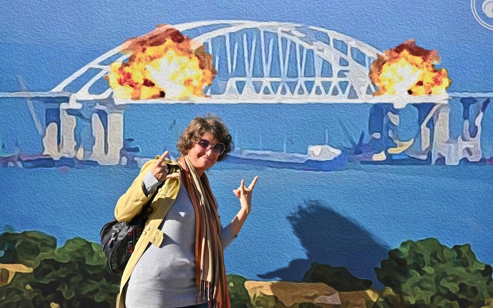 ووفقا لـ الصحيفة، فإن الطابع يرسم تشابهًا بين تدمير جزء من الجسر، المشروع الذي افتخر به الرئيس الروسي فلاديمير بوتين، وغرق سفينة تايتانيك التي كان يفترض أنها غير قابلة للتدمير، وغرقت في عام 1912 برحلتها الأولى.