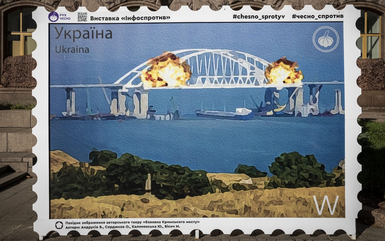 أصدر مكتب البريد الأوكراني طابعًا جديدًا يحتفل من خلاله بتدمير جسر كيرتش الرابط بين روسيا وشبه جزيرة القرم، والذي تم تفجيره في وقت مبكر من صباح اليوم السبت، وفقا لما أفادت به صحيفة التلجراف البريطانية.