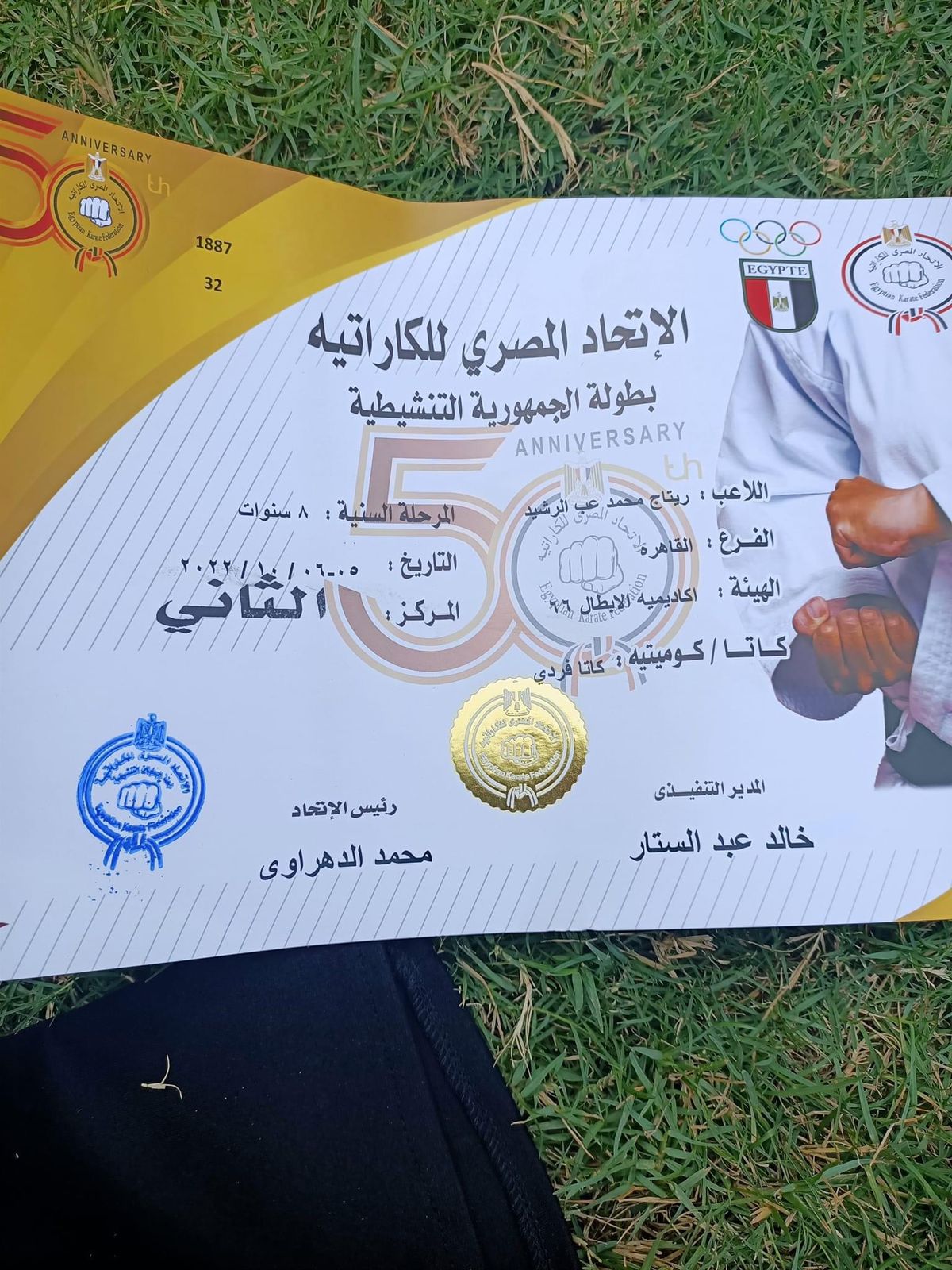 حصدت الطفلة ريتاج محمد، الميدالية الفضية في بطولة الجمهورية التنشيطية للكاراتيه، بعدما حصلت على المركز الثاني في المسابقة التي أقيمت في الصالة المغطاة بستاد القاهرة الدولي.
