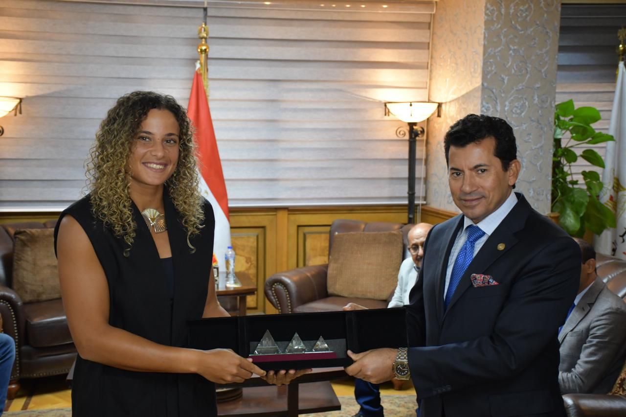 وزير الرياضة يكرم ميار شريف بعد تتويجها بلقب بطولة بارما الإيطالية