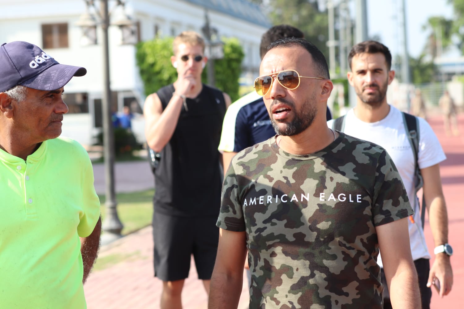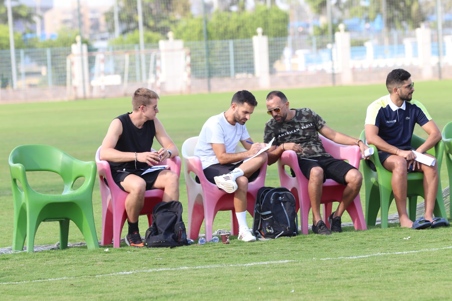 وحضر كلا من الإسباني داريو نافارو وأيمن كمال مدربي الفريق والسعودي أسامة الحمداني مدرب حراس المرمي والإسباني ديفيد بيستيرو مخطط الأحمال، للاطمئنان على جميع العناصر الشابه.