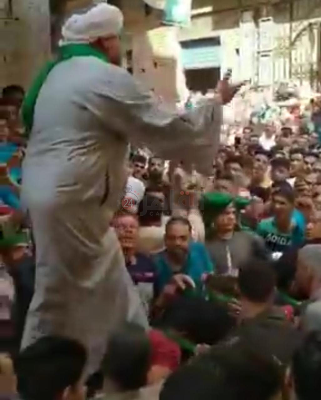 شخص يسير على جسد المواطنين خلال احتفالات المولد بقطور
