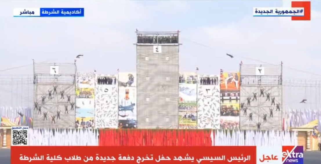 قدم خريجي وطلاب كلية الشرطة عرضا بالدراجات الهوائية، وعرض لطلاب الكونغ فو، ومهارات إصابة الأهداف، والمهارات الخاصة في مواجهة الأهداف بمشاركة العنصر النسائي، وشكلوا من خلال هذه العروض علم مصر أمام الرئيس عبد الفتاح السيسي، حيث تشهد أكاديمية الشرطة، حفل تخرج دفعة جديدة من الطلاب، بحضور الرئيس عبد الفتاح السيسي، والدكتور مصطفى مدبولي رئيس الوزراء، واللواء محمود توفيق وزير الداخلية، والدكتور أحمد الطيب شيخ الأزهر، وعدد من الوزراء والشخصيات العامة والرموز الوطنية وأهالي الخريجين.