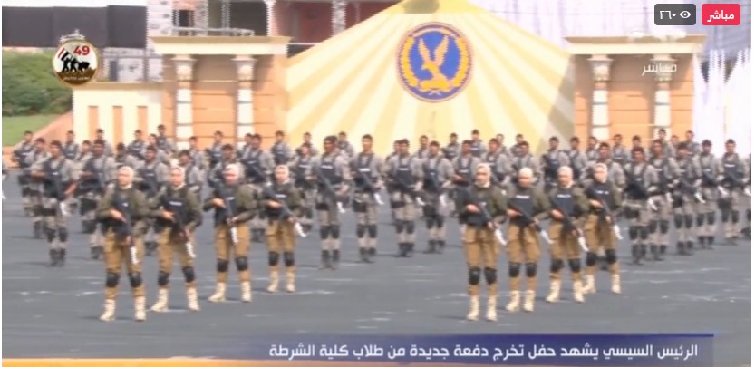وشهد الرئيس عبد الفتاح السيسي، عروضا من القوة واللياقة البدنية التي تظهر قوة ودقة طلاب كلية الشرطة في حفل تخرجهم، ومن ضمن العروض شارك الطلاب بكتابة حياة كريمة.