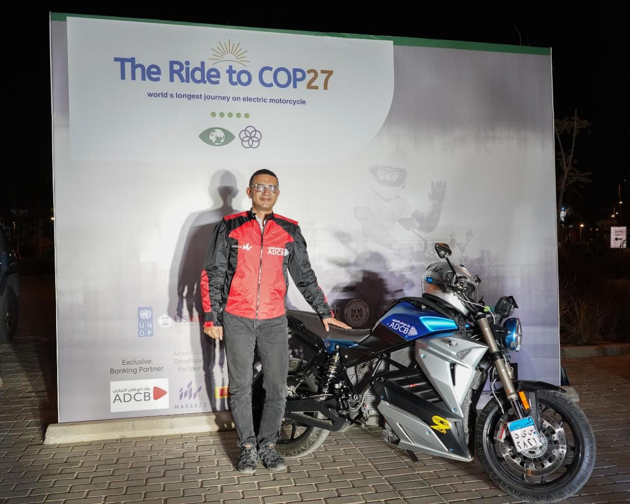 مغامر مصري ينطلق في رحلة بالمحافظات على دراجة كهربائية للتوعية بقضية تغيُّر المُناخ | صور
