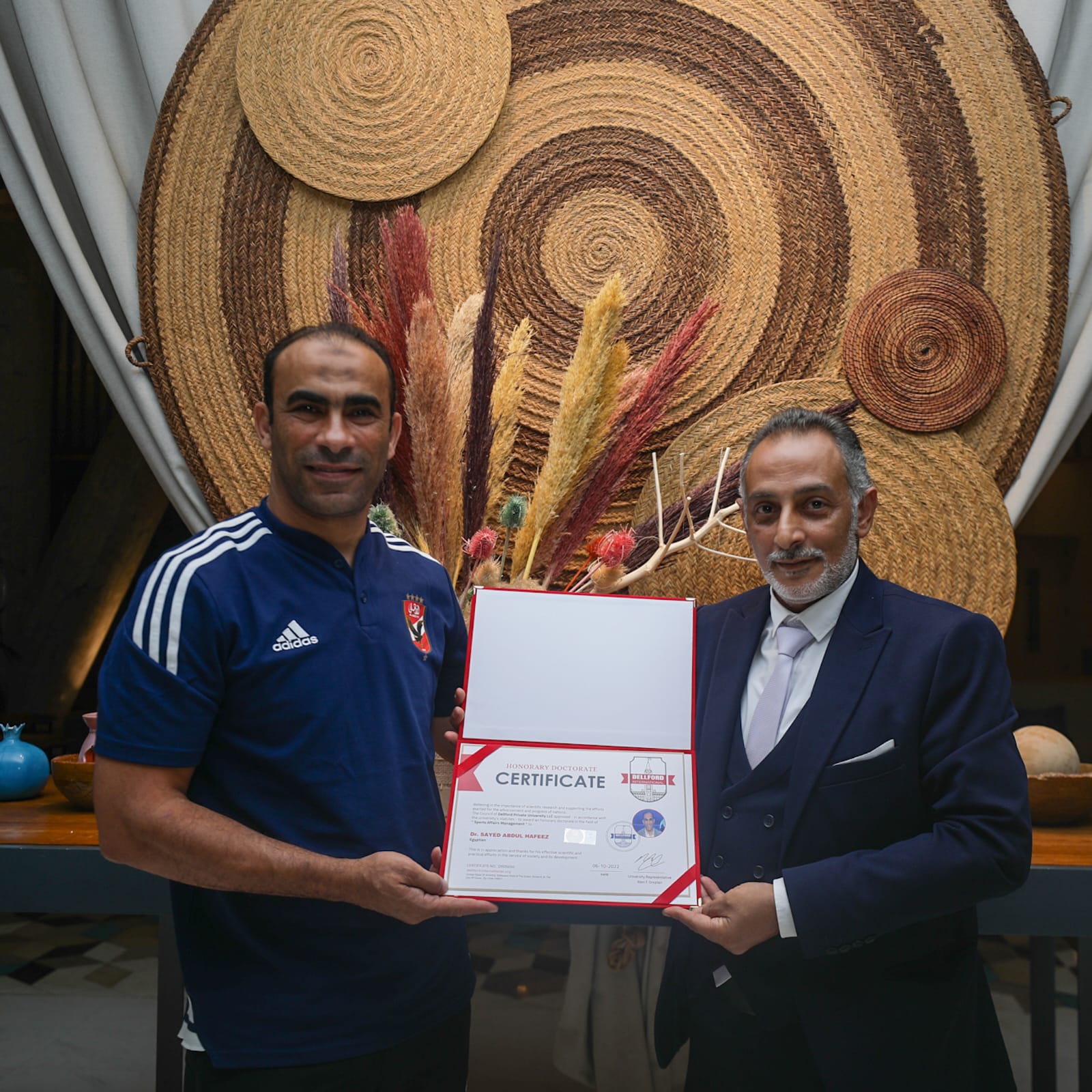 منحت جامعة ديلفورد الأمريكية الخاصة LLC، الدكتوراه الفخرية لـ سيد عبدالحفيظ، مدير الكرة بالنادي الأهلي؛ تقديرًا لجهوده الكبيرة وخدماته في مجال إدارة الشئون الرياضية.