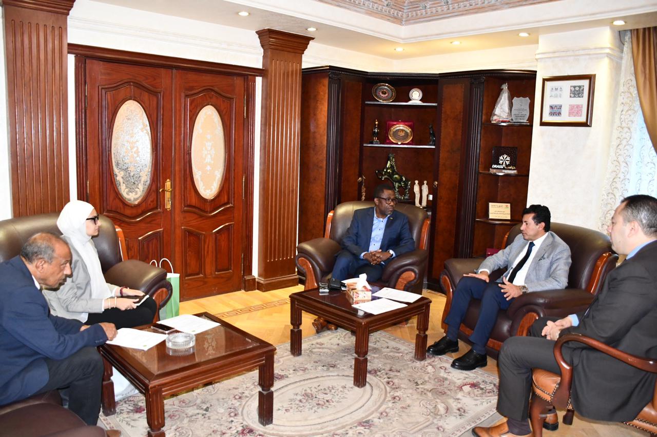 وزير الرياضة يبحث تعزيز التعاون مع الاتحاد الإفريقي لكرة القدم