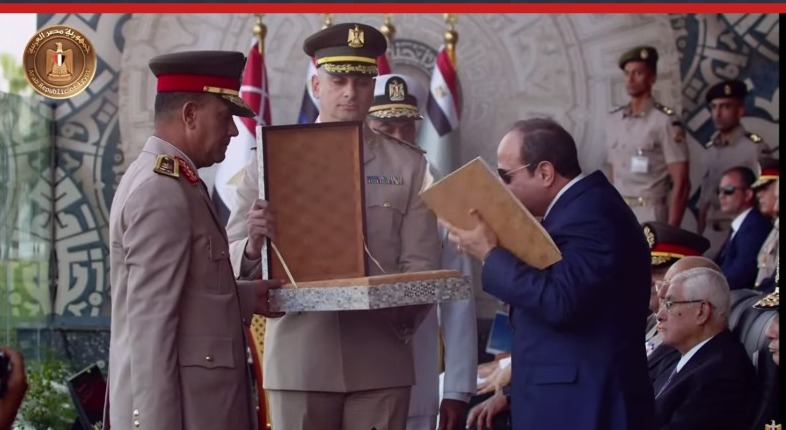 تقدم اللواء أشرف سالم زاهر مدير الأكاديمية العسكرية، بنسخة من القرآن الكريم، كهدية تذكارية للرئيس عبد الفتاح السيسي، رئيس الجمهورية، قائلًا: أتقدم بكتاب الله ليكون حافظًا لكم وللوطن.