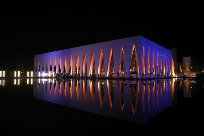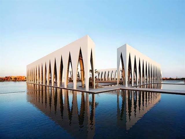 وتتسع قاعة المؤتمرات التى تستضيف أوبرا عايدة، مساء اليوم الخميس، لـ 600 مقعد، وتحيط به بحيرة صناعية كبيرة وأعمدة مقوسة رائعة مصنوعة من الخرسانة الجاهزة.