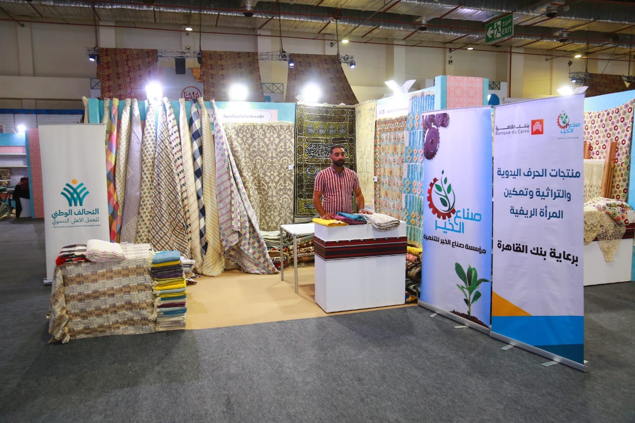 وشمل جناح صناع الخير للتنمية بمعرض تراثنا منتجات المشروعات التنموية التي تنفذها المؤسسة لإحياء الحرف اليدوية والتراثية، ضمن جهود التحالف الوطني للعمل الأهلي التنموي وتنفيذًا لأهداف المبادرة الرئاسية حياة كريمة؛ بهدف توفير المئات من فرص العمل غير التقليدية للفتيات وللمرأة المعيلة.