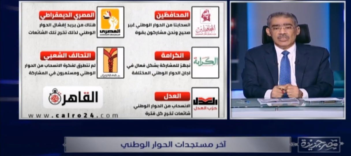 وأضاف المنسق العام للحوار الوطني، خلال برنامجه مصر جديدة، أن من ضمن شائعاتهم، أن بعض القوى السياسية ترغب في الانسحاب، وأن هناك أطرافا خاصة من الحركة المدنية الديمقراطية، تعلن عدم المشاركة في الحوار، بسبب عدم الإفراج عن بعض المحبوسين احتياطيًا، متابعا: في الحقيقة أن موقع القاهرة 24 أجرى لقاءات مع بعض مسؤولي أحزاب الحركة المدنية، والذين أعلنوا مشاركتهم في الحوار الوطني وبينوا أن هذه عبارة عن إشاعات، حيث تحدث حزب المحافظين عن مشاركته بالحوار الوطني، وكما تحدث الحزب المصري الديمقراطي عن محاولات البعض في إفشال الحوار الوطني وإطلاق بعض الشائعات، كما بين حزب الكرامة الناصري أنه يجهز لملف المشاركة في لجان الحوار الوطني المختلفة.