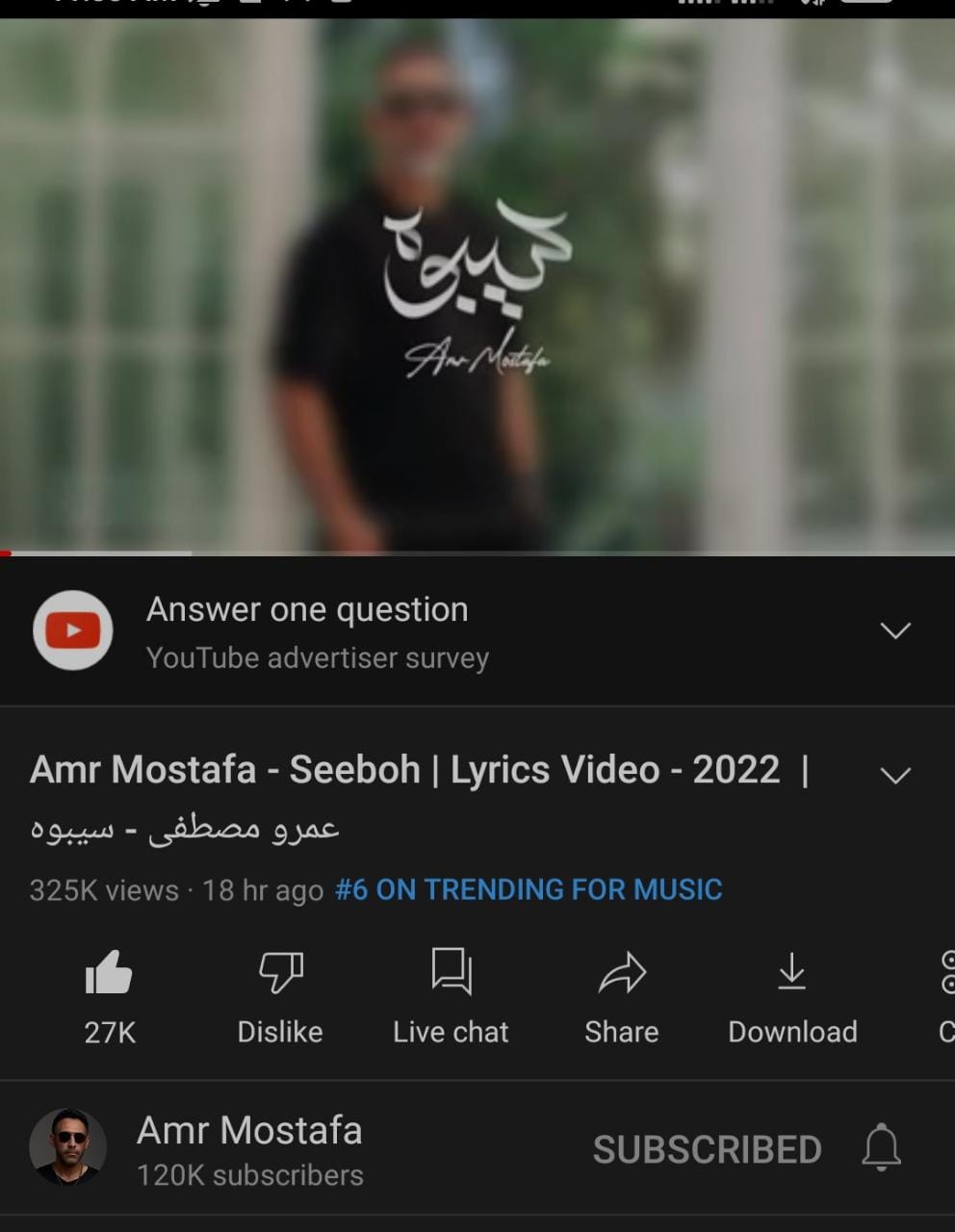تصدر الفنان عمرو مصطفى محركات البحث في جوجل وموقع الفيديوهات الشهير يوتيوب، بأغنيته الجديدة سيبوه، خلال أقل من 24 ساعة من طرحها.