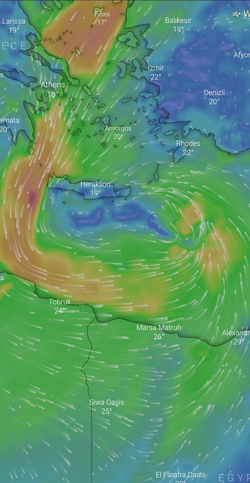 - البحر المتوسط: معتدل إلى مضطرب، وارتفاع الموج فيه يتراوح بين 1.5 إلى 2.25، واتجاه الرياح شمالية غربية.