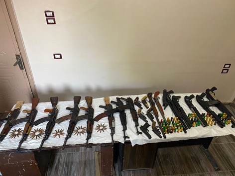 وأسفرت جهود الحملة عن ضبط عدد 21 قطعة سلاح ناري عبارة عن 8 بنادق آلية – 7 بنادق خرطوش–طبنجة - 5 فرد محلي - عدد من الطلقات مختلفة الأعيرة، بحوزة 15 متهما لعدد 3 منهم معلومات جنائية.