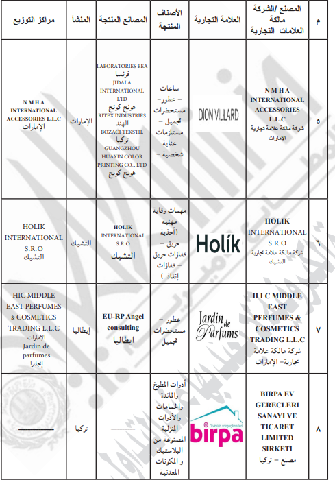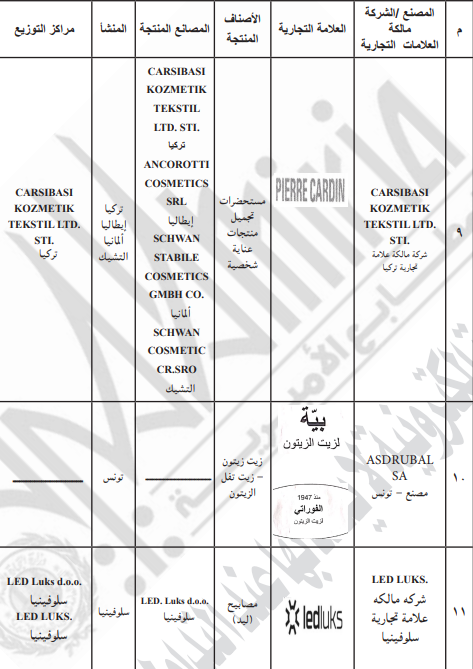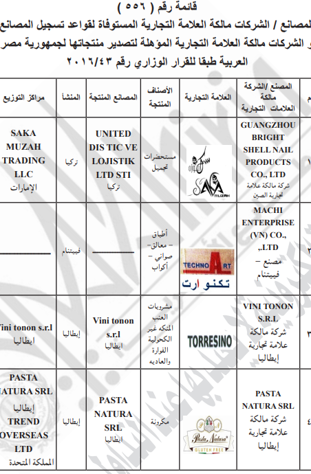 وتضمنت المادة الأولى من القرار قيد المصانع والشركات مالكة العلامة التجارية المبينة أسماؤهم بالقوائم المرفقة رقـم 462، 556 طبقا للقرار الوزاري رقم 43 لسنة 2016 في سجل المصانع والشركات مالكة العلامة التجارية المؤهلة لتصدير منتجاتها إلى جمهورية مصر العربية والمنشأ لهذا الغرض بالهيئة العامة للرقابة على الصادرات والواردات.