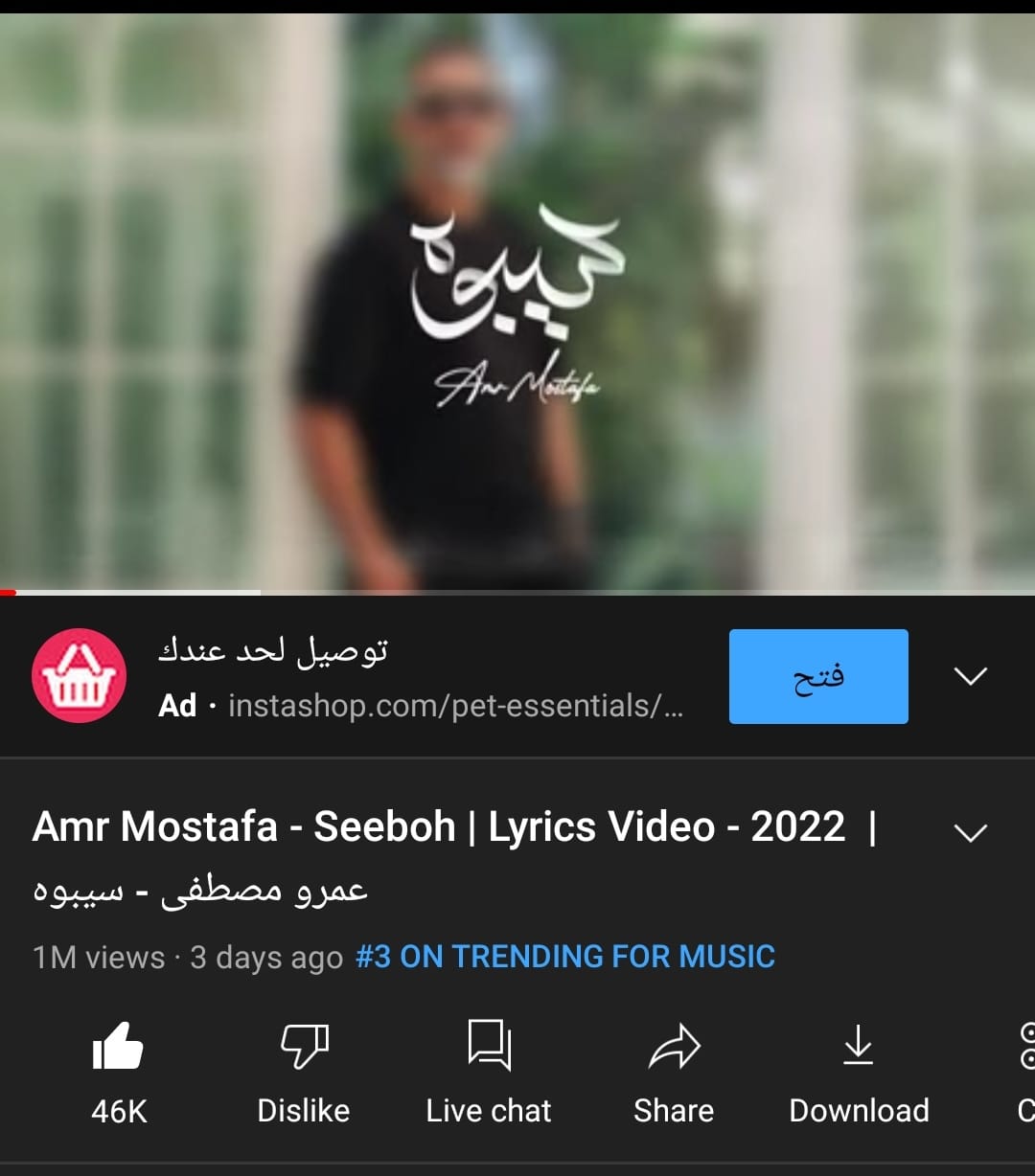 استطاع الفنان عمرو مصطفى تحقيق نجاح كبير بأغنية سيبوه، التي طرحها قبل ثلاثة أيام عبر قناته الرسمية على يوتيوب، وتخطت مشاهداتها حاجز المليون مشاهدة، وتحتل المرتبة الثالثة في تريند يوتيوب.