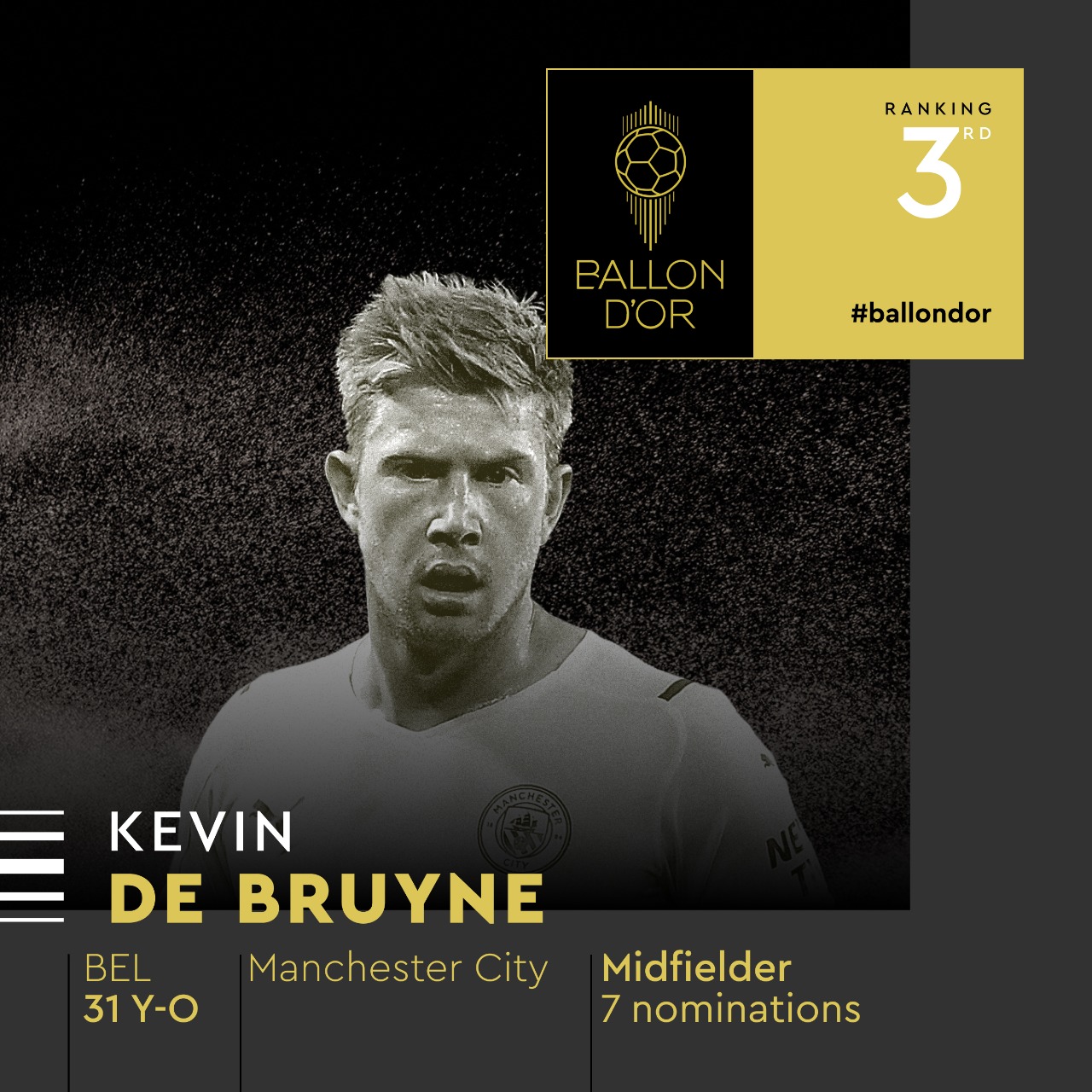وتواجد النجم البلجيكي كيفين دي بروين لاعب وسط مانشستر سيتي بالمركز الثالث، واحتل ليفاندوفسكي مهاجم بايرن ميونيخ الألماني السابق وبرشلونة الأسباني السابق المركز الرابع.