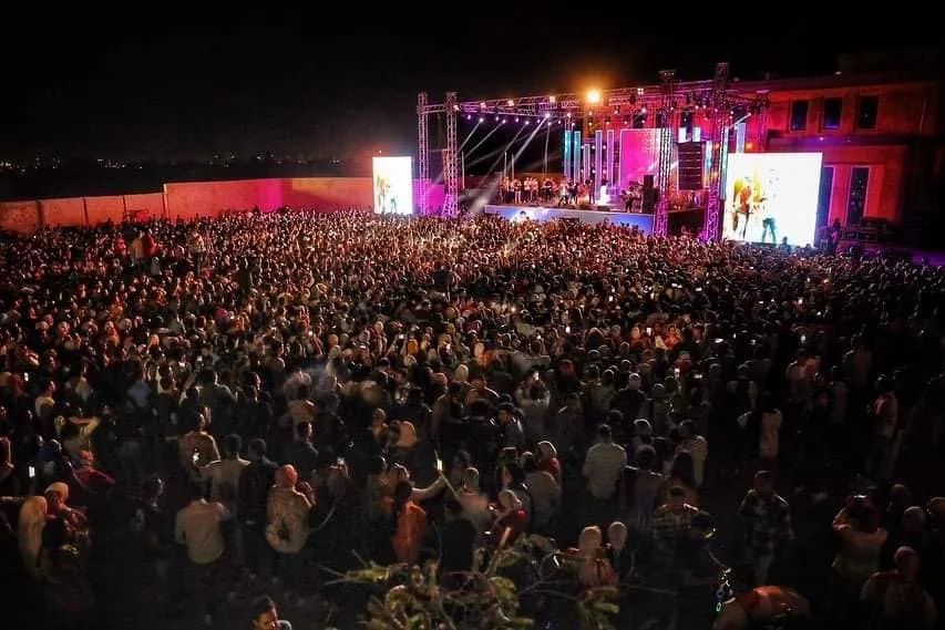 أقامت إحدى الجامعات الخاصة، في محافظة بني سويف، حفلًا غنائيًا، بحضور المطربين أحمد سعد ومحمود العسيلي، بمناسبة العام الدراسي الجديد واستقبال الطلبة الجدد، إلا أن الحفل لاقى غضب واستياء العديد من رواد مواقع التواصل الاجتماعي بسبب المسافة التي تفصل منصة الحفل عن مقابر دفن الموتى هى سور الجامعة فقط.