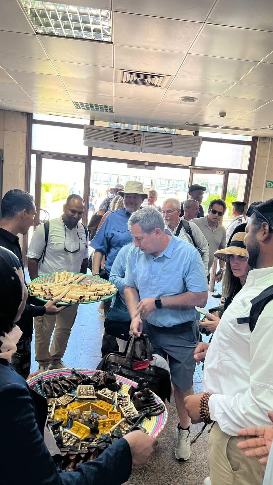 استقبل مطار أبو سمبل، اليوم السبت، زائرين من جميع أنحاء العالم للاحتفال بظاهرة تعامد الشمس على وجه الملك رمسيس الثاني بمعبده الكبير فى مدينة أبوسمبل.