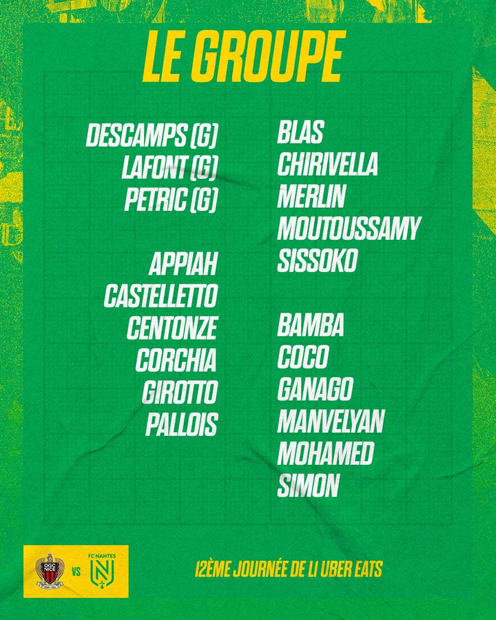 أعلن المدرب أنطوان كومباريه، المدير الفني لفريق نانت، المحترف ضمن صفوفه مصطفى محمد، قائمة الفريق الرسمية لمواجهة فريق نيس، في إطار منافسات مسابقة الدوري الفرنسي 2022-2023.