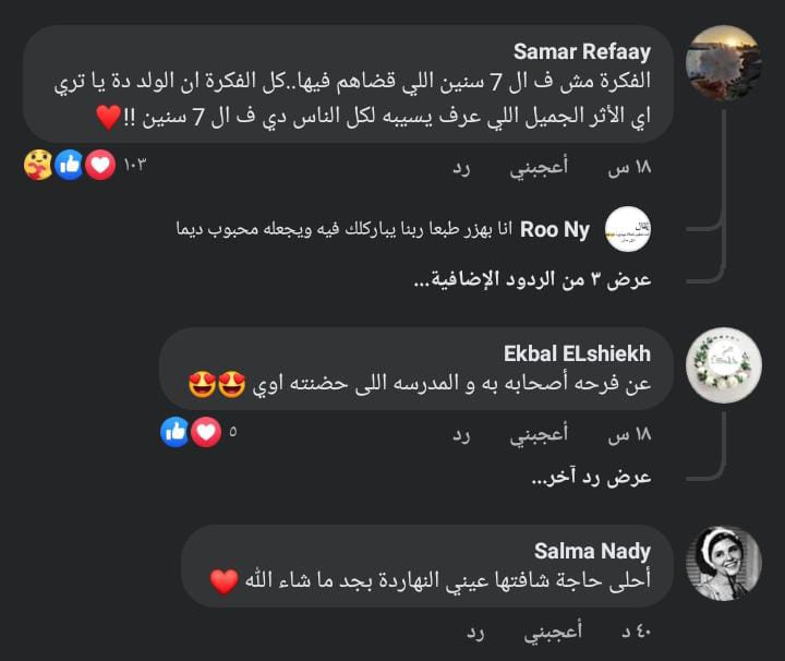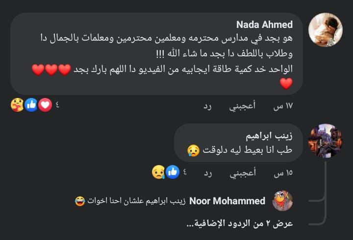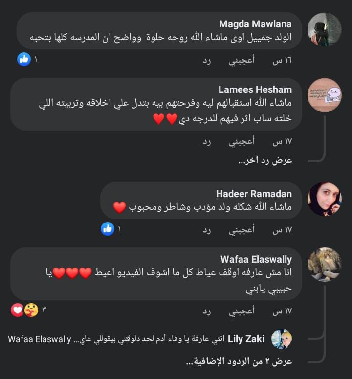 جدير بالذكر أن هذا الفيديو نال إعجاب عدد كبير من وراد موقع التواصل الاجتماعي، فيسبوك، مؤكدين على جمال الطالب والمعلمين والأصدقاء، وهم في غاية السعادة والفرحة واللطف أيضًا ووجود الود بينهم.