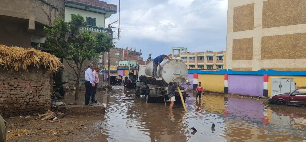 بدء عمليات شفط وكسح تجمعات مياه الأمطار بمراكز وقرى الدقهلية
